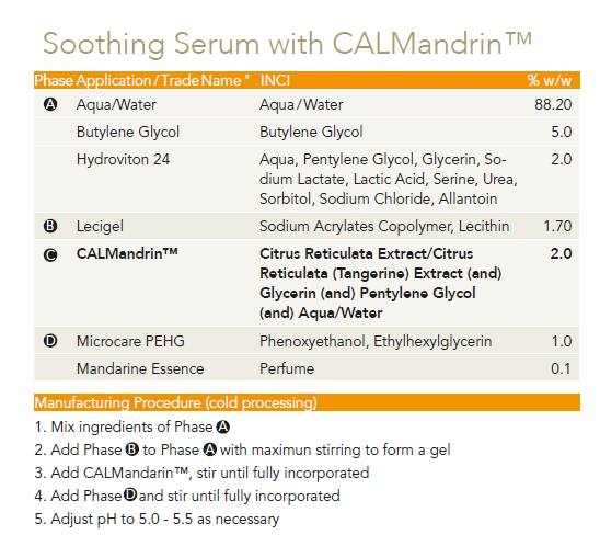 Find here the formulation for the Soothing Serum with CALMandrin™.